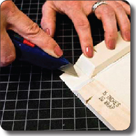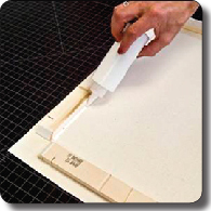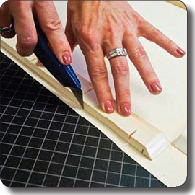 STEP 6. Using our canvas trimmer or a sharp knife, trim off the excess canvas. The Gallerie wrap bars provide a nice straight edge to trim along.